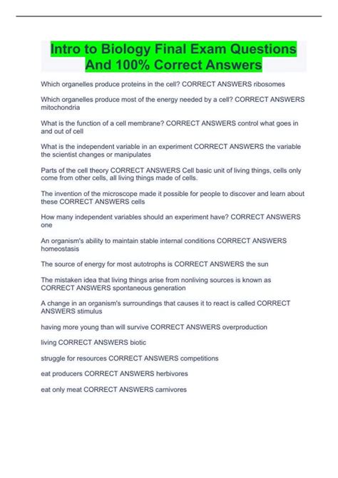 Read Online intro to biology final exam mobipocket